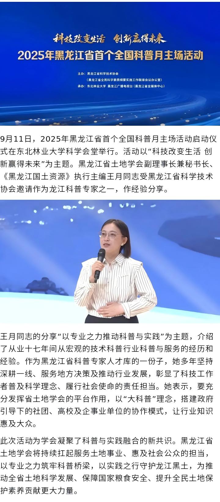 黑龙江省土地学会受邀参与2025年省首个全国科普月活动并作经验分享
